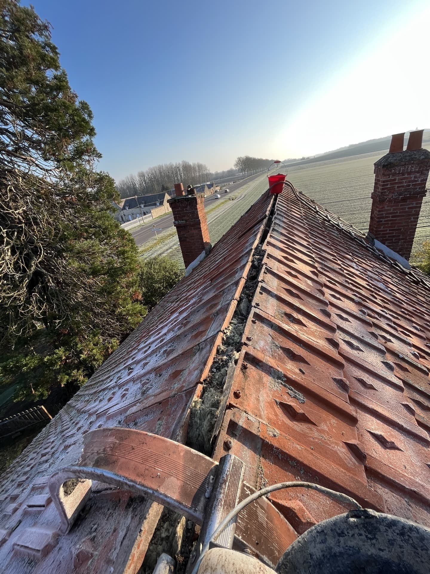 Intervention effectuée en 2021 dans l'Yonne avec le remplacement complet du faîtage de cette habitation.