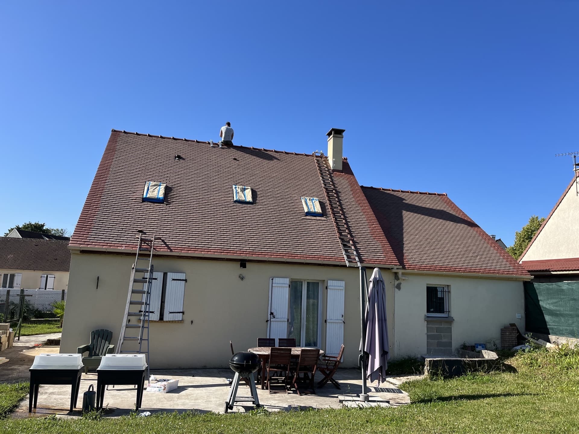Nous avons effectué en 2022 ces travaux sur toiture visant à la nettoyer et lui donner un coup de jeune à l'aide d'hydrofuge coloré.
